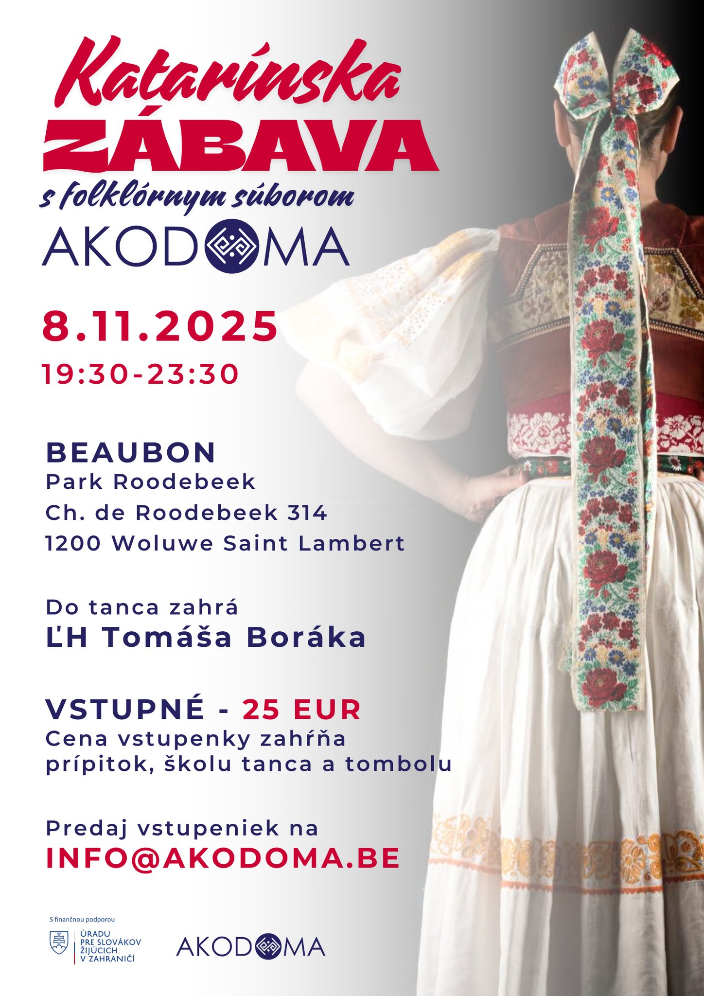 Folklórny súbor AkoDoma vás pozýva na Katarínsku zábavu, ktorá sa uskutoční 8. novembra 2025 o 19:30.