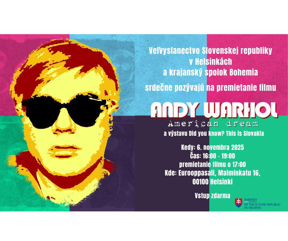 Srdečne všetkých pozývame na premietanie filmu o Andym Warholovi - American dream a zároveň na výstavu o Slovensku - Did you know? This is Slovakia