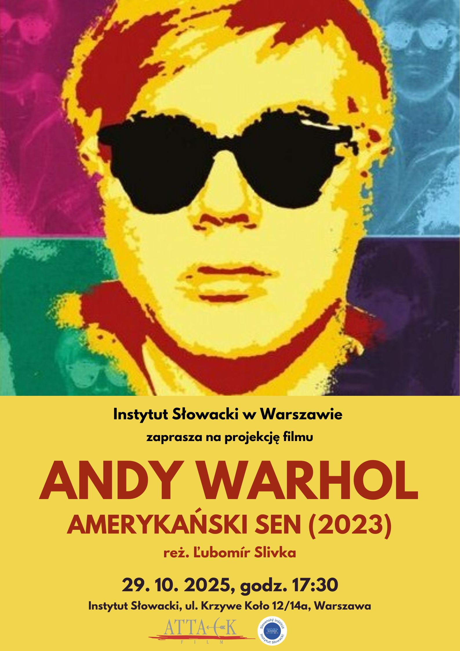 Zaproszenie na projekcję filmu Andy Warhol, Amerykanski sen (2023)