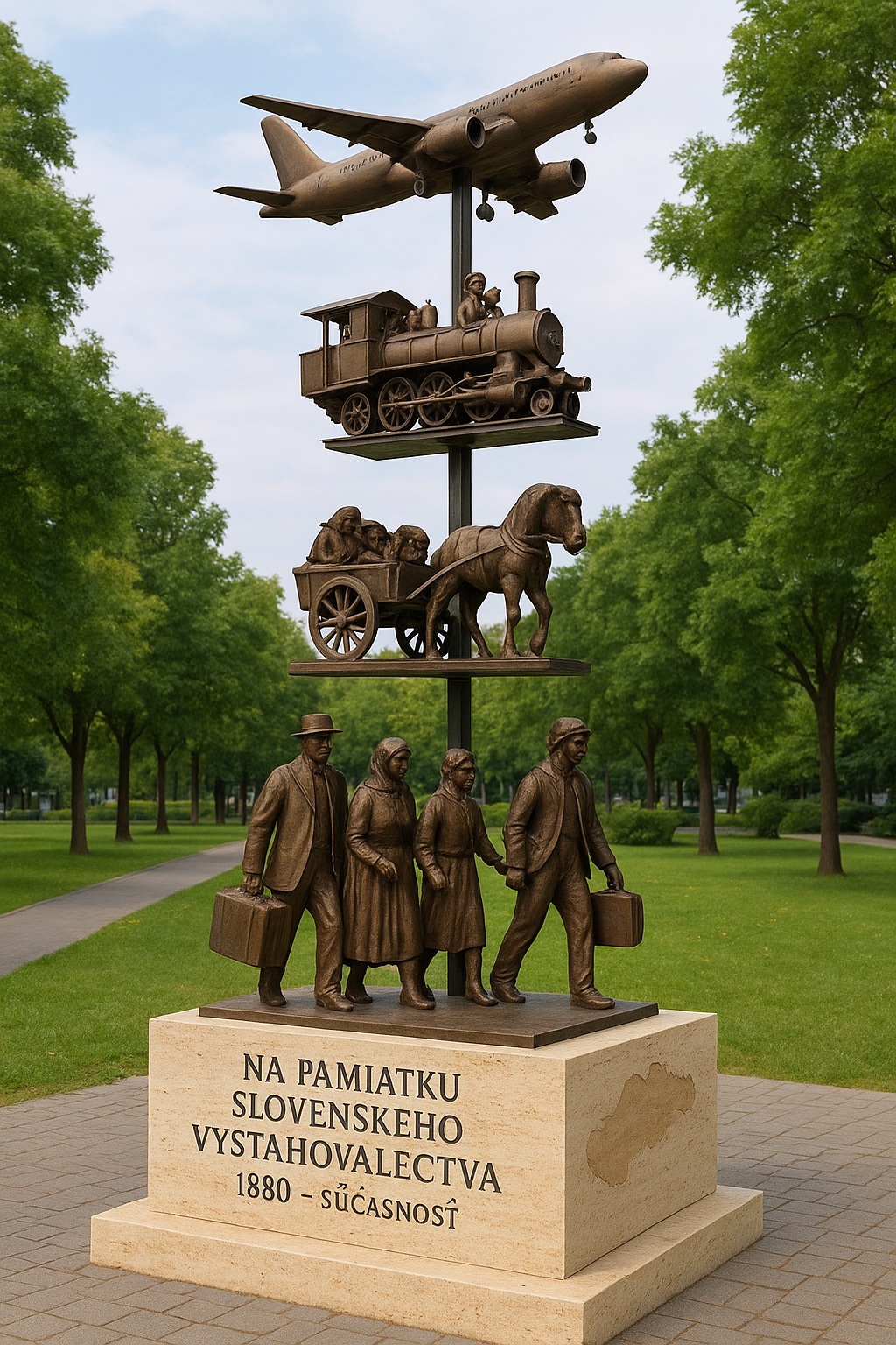 Pamätník slovenského vysťahovalectva má symbolizovať odchod Slovákov do sveta — nielen ako bolestné odlúčenie, ale aj ako cestu za prácou, slobodou a novými možnosťami, ktorá však nikdy neprerušila väzbu k domovine. Má symbolizovať kontinuitu, minulosť so súčasnosťou a súčasnosť s budúcnosťou. Slovenská diaspóra je, zaostáva a vždy bude integrálnou súčasťou slovenského národa. Podľa ostatného sčítania obyvateľstva v roku 2021, žije v Slovenskej republike 4 567 547 Slovákov (83,82 %). Podľa rôznych štatistík a odhadov žije v zahraničí v diaspóre približne 1 535 680 Slovákov a ich potomkov (oficiálne údaje Úradu pre Slovákov žijúcich v zahraničí, www.uszz.sk). Celkovo teda, žije vo svete približne 6 103 227 Slovákov a ich potomkov, z toho slovenská diaspóra vo svete predstavuje 25,16 %.