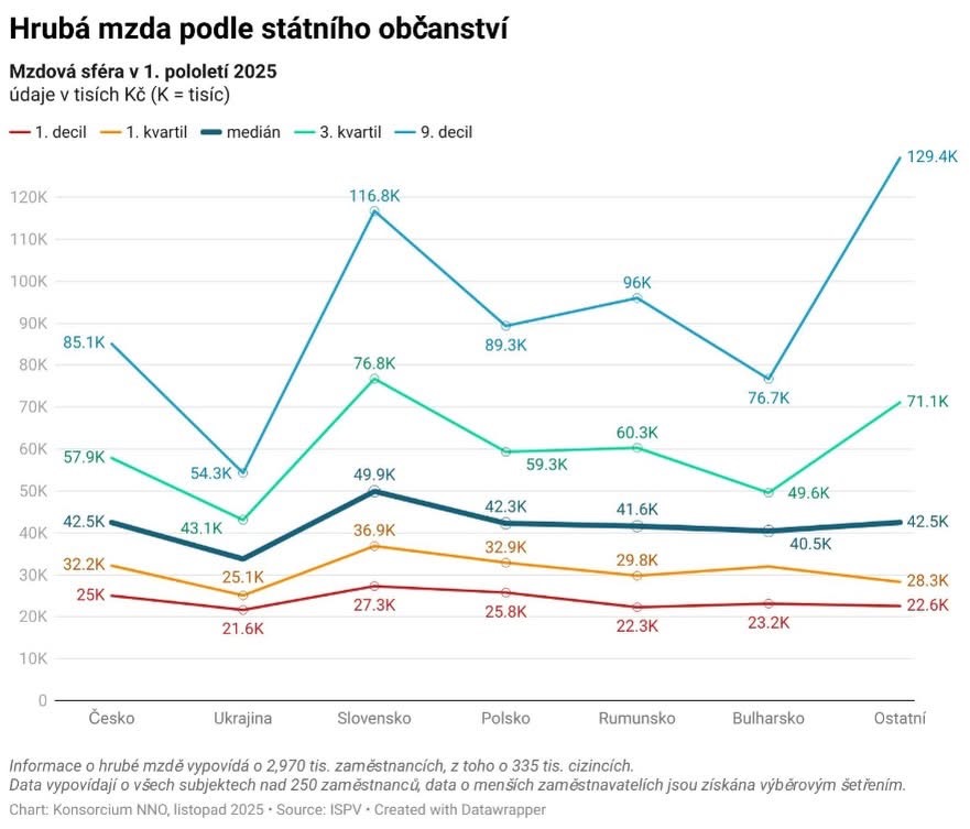 Zaujímavé je ale porovnanie najvyššieho decilu ČR-SR (10% zamestnaných Slovákov s najvyššími príjmami) jasne ukazuje, ako si český trh pohodlne odoberá talenty, ktoré sú zo Slovenska vyháňané vysokými odvodmi, daňami, zlým podnikateľským prostredím, a nízkou kvalitou verejných služieb. Vysoké platy tejto skupiny dokazujú, že do ČR odchádzajú ľudia so vzácnou kvalifikáciou a často na tie najvyššie pozície (teraz nemyslíme nového českého ministra dopravy, verejná správa nie je v štatistike zahrnutá). 🚉🙋🏻♂