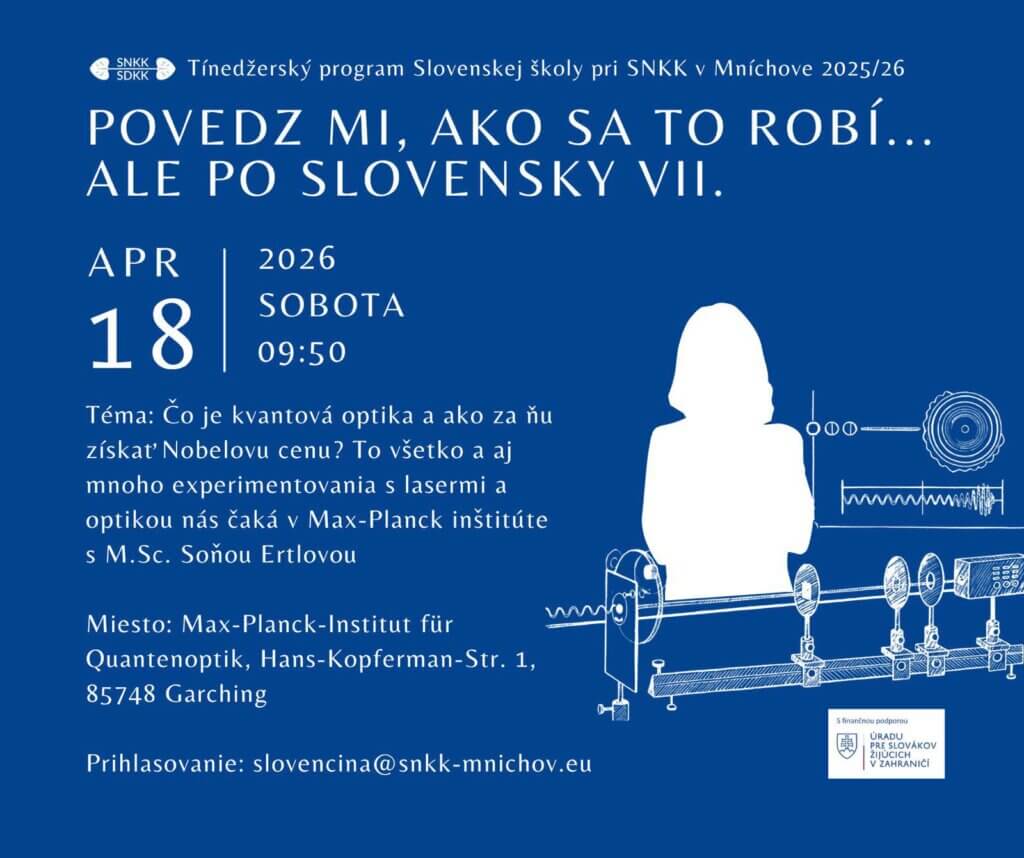 Povedz mi, ako sa to robí... ale po slovensky: O kvantovej optike a experimentoch s lasermi v Max Planck Inštitúte - od 18.4.2026 do 18.4.2026