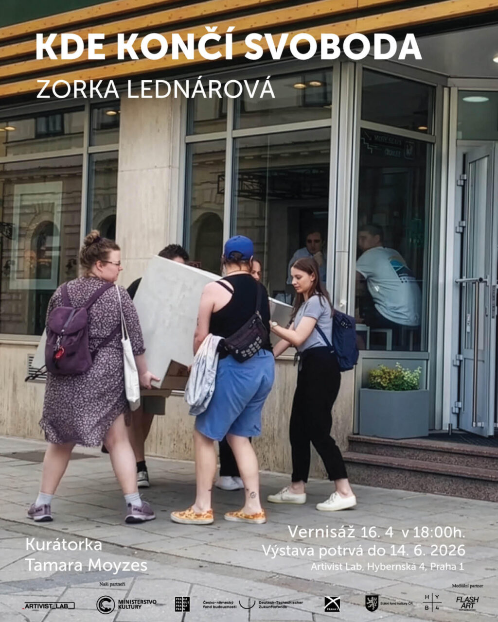 Kde končí svoboda Zorky Lednárové tematizuje přístupnost veřejného prostoru nikoli jako technický nebo administrativní problém, ale jako otázku politickou, tělesnou a institucionální. Projekt vychází z rezidenčního pobytu umělkyně v Artivist Labu a rozvíjí se jako soubor intervencí, workshopů, přednášek, sběru výpovědí a vizuálních výstupů, které společně zkoumají, komu je veřejný prostor skutečně určen a komu zůstává i nadále podmíněně nebo zcela uzavřen. Základním východiskem projektu je skutečnost, že svoboda pohybu není ve společnosti rozložena rovnoměrně, ale je formována konkrétní architekturou, provozem institucí i mírou ochoty přizpůsobit prostředí rozmanitým potřebám jeho uživatelstva.