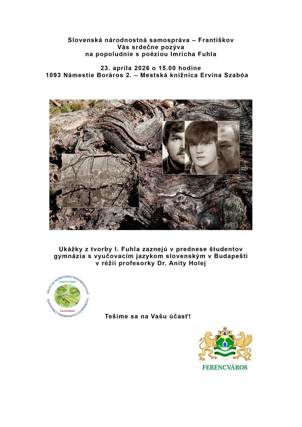 Popoludnie s poéziou Imricha Fuhla 23. apríla v IX. obvode Budapešti
